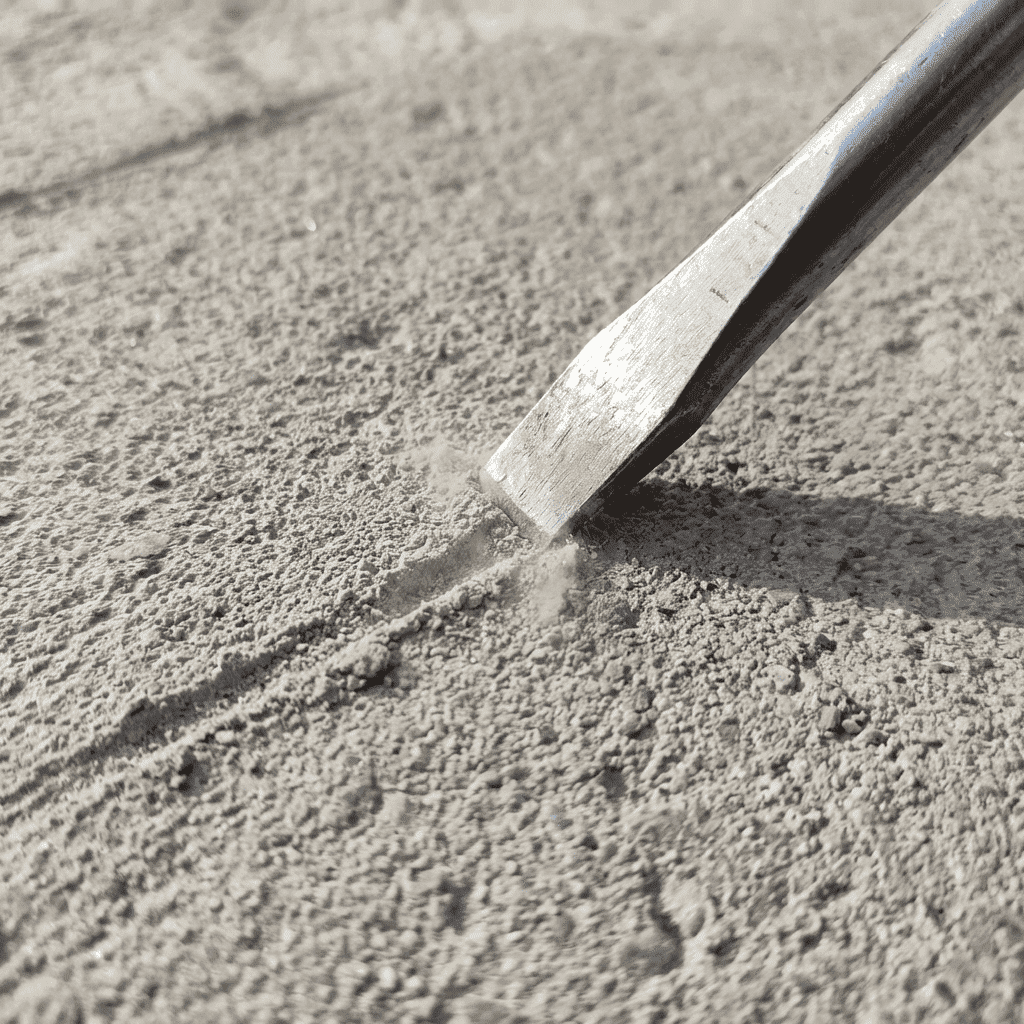Mit einer einfachen Kratzprobe lässt sich feststellen, ob die Oberfläche des Bodens stabil genug ist.