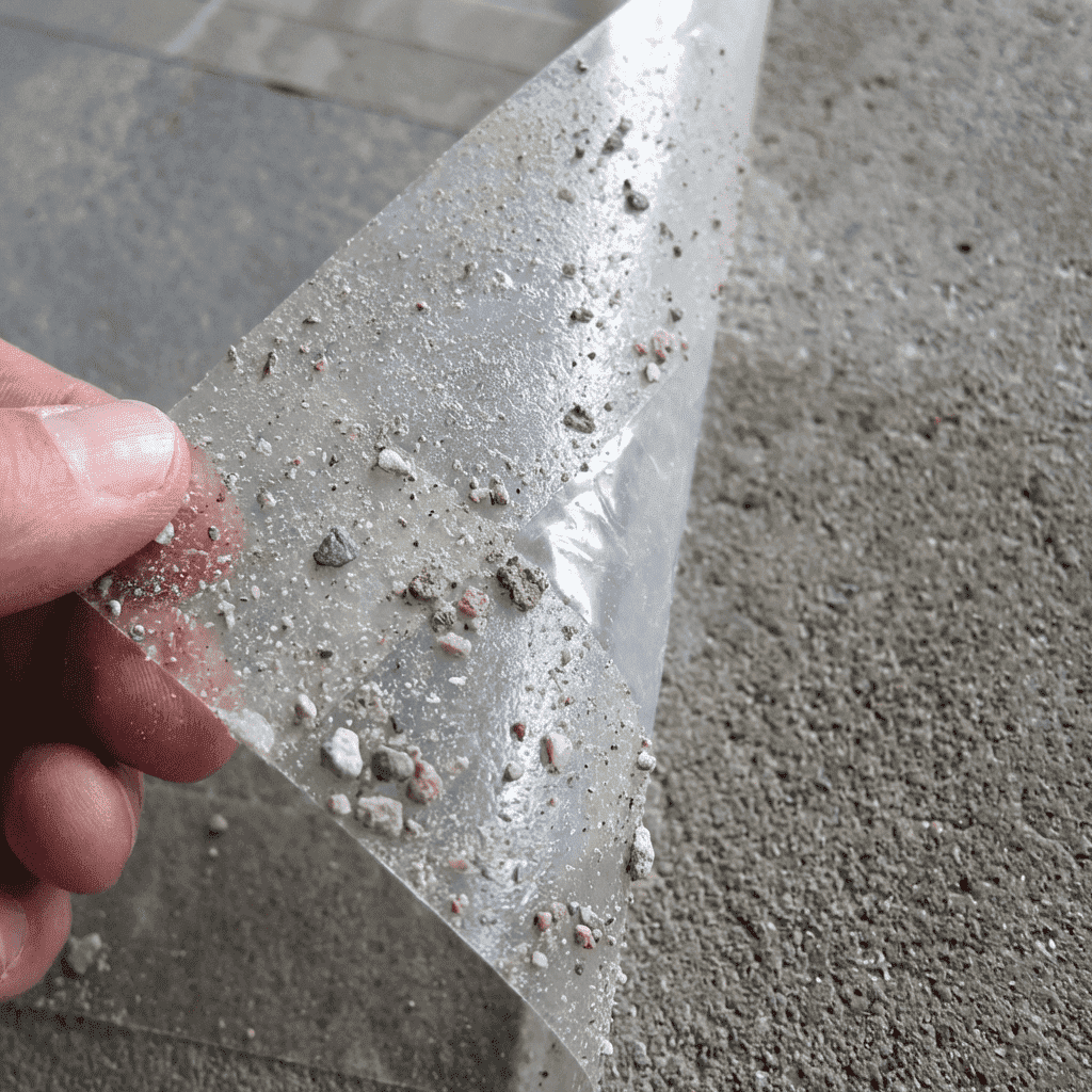 Bleibt eine dünne, glänzende Schicht am Klebeband haften, kann es sich um eine sogenannte Sinterschicht handeln. Diese entsteht häufig bei Beton oder Estrich und muss vor weiteren Arbeiten mechanisch abgeschliffen werden.