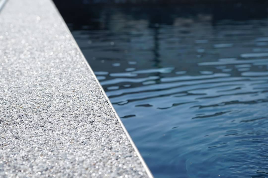 mit unserem speziellen Systemen zur chemisch beständigen Poolumrandung aus Steinteppich!